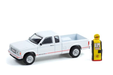 For kids and collectors alike, you can’t beat this high-performance pickup truck from Greenlight! This 1991 GMC Sonoma ST Pickup Truck and Vintage “Pennzoil” Gas Pump is a 1/64 scale model replica. It comes in white and features real rubber tires, detailed exterior, metal body ans chassis, comes in a blister pack. It’s a fantastic selection for any pickup truck collection, and wonderful for faithful GMC aficionados!