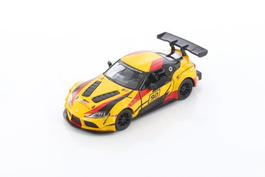 Toyota GR Supra Racing Concept Hardtop with Decals, Yellow – Kinsmart 5421DF – 1/36 Diecast Car